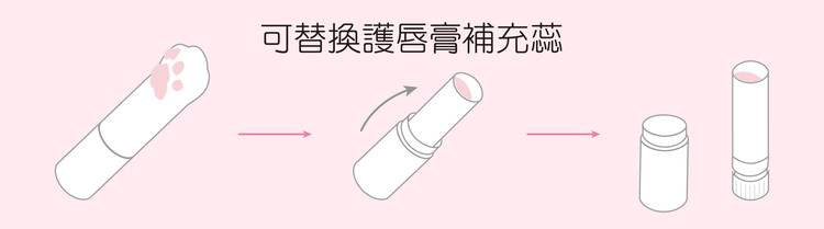 使用方法:打開貓掌外殼將護唇膏向上旋出,直接塗抹於唇部