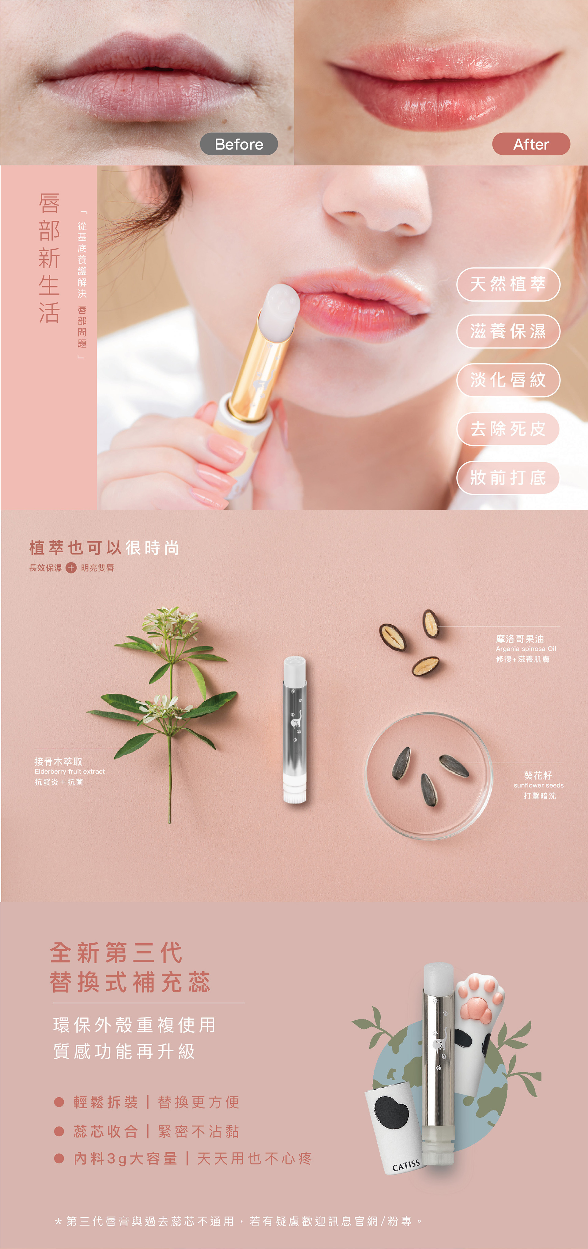 適用於三代貓掌護唇膏,與一代&二代護唇膏不通用如有任何疑慮歡迎訊息官網/粉專。