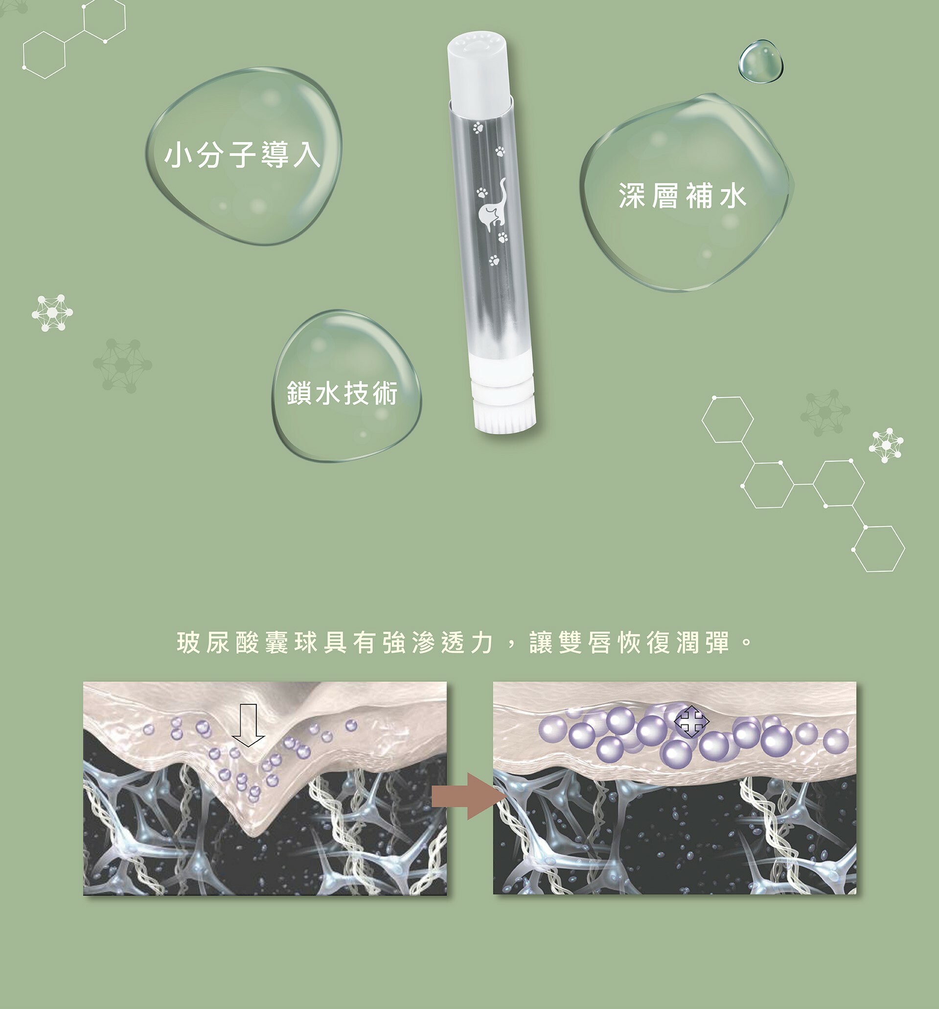 頂級玻尿酸囊球,清爽保濕不黏膩,撫平唇紋舒緩乾裂